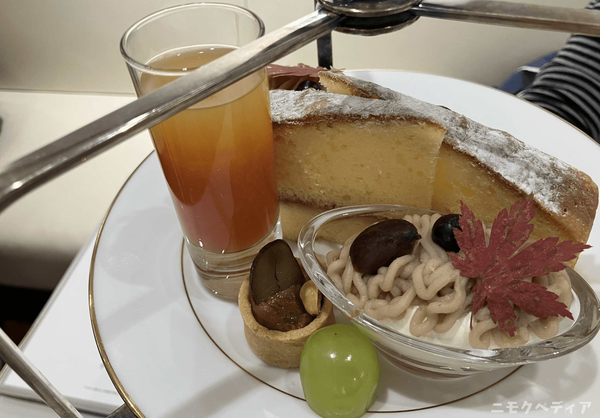 秋のアフターヌーンティーを注文しました。写真で見るとそうでもないのですが、かなり満腹になります。サンドイッチの量が多いからでしょうか。